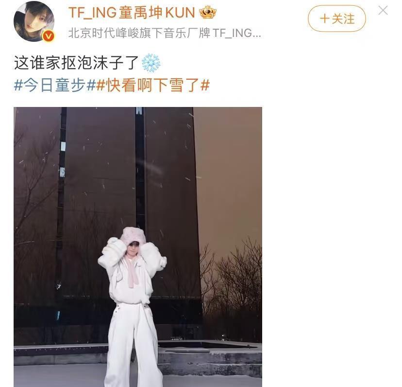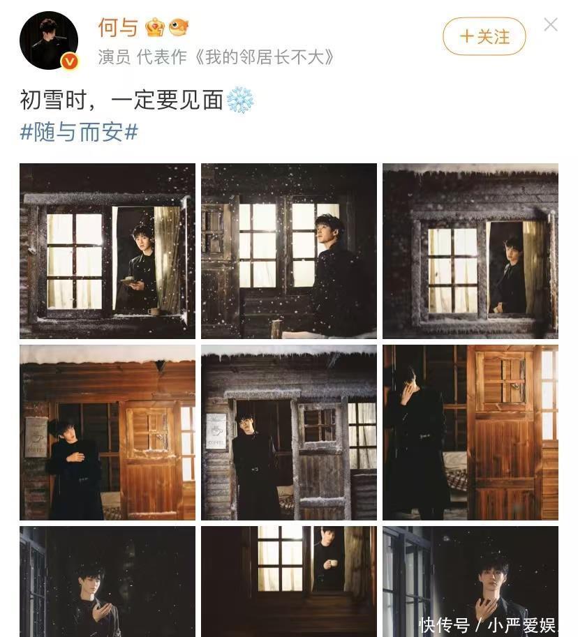 何与算是特别帅特别有氛围感的一组照片了,每一张都让人想起了《鬼怪》。一米八几的大高个,那个女生能不心动?不是所有雪都像初雪般浪漫,所以大家都很激动,拍的每一张图片都很多唯美。感谢大自然的馈赠,瑞雪兆丰年,希望2026年一切顺利。